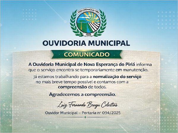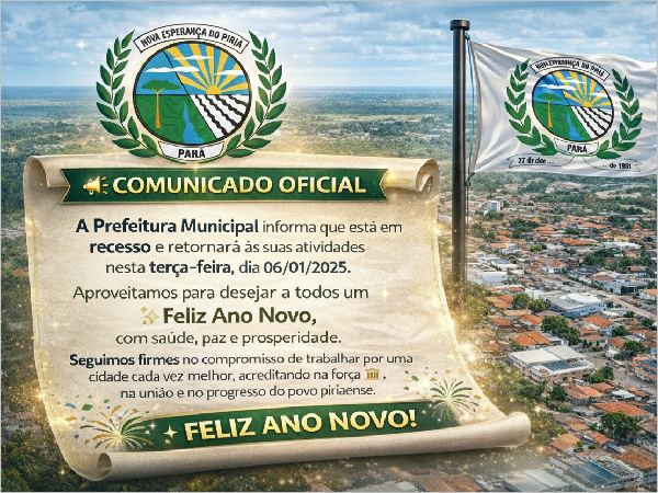 PREFEITURA MUNICIPAL DE NOVA ESPERANÇA DO PIRIÁ SECRETARIA MUNICIPAL DE ADMINISTRAÇÃO E FINANÇAS SECRETARIA MUNICIPAL DE AGRICULTURA, PECUÁRIA E ABASTECIMENTO SECRETARIA MUNICIPAL DE CULTURA E TURISMO SECRETARIA MUNICIPAL DE EDUCAÇÃO SECRETARIA MUNICIPAL DE ESPORTE. JUVENTUDE E LAZER SECRETARIA MUNICIPAL DE MEIO AMBIENTE E HABITAÇÃO SECRETARIA MUNICIPAL DE OBRAS, TRANSPORTE E URBANISMO SECRETARIA MUNICIPAL DE PLANEJAMENTO E GESTÃO SECRETARIA MUNICIPAL DE PROMOÇÃO E ASSISTÊNCIA SOCIAL SECRETARIA MUNICIPAL DE SAÚDE E SANEAMENTO SECRETARIA MUNICIPAL DOS DIREITOS DAS MULHERES